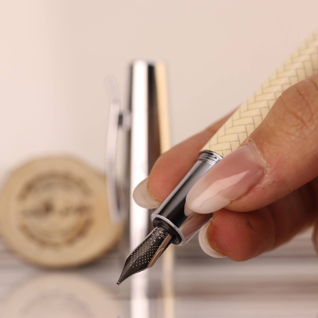 بدنهی عاجرنگ این خودنویس، با حکاکی لیزری به طرح پارکت مزین شده است که حس طبیعت و اصالت را به کاربر القا میکند. قطعات فلزی درپوش و انتهایی قلم از جنس کروم براق هستند که درخشش و زیبایی بیشتری به این محصول میافزاید. طراحی ارگونومیک این خودنویس به گونهای است که به راحتی در دست قرار میگیرد و حتی در نوشتارهای طولانی نیز راحتی کاملی فراهم میآورد.