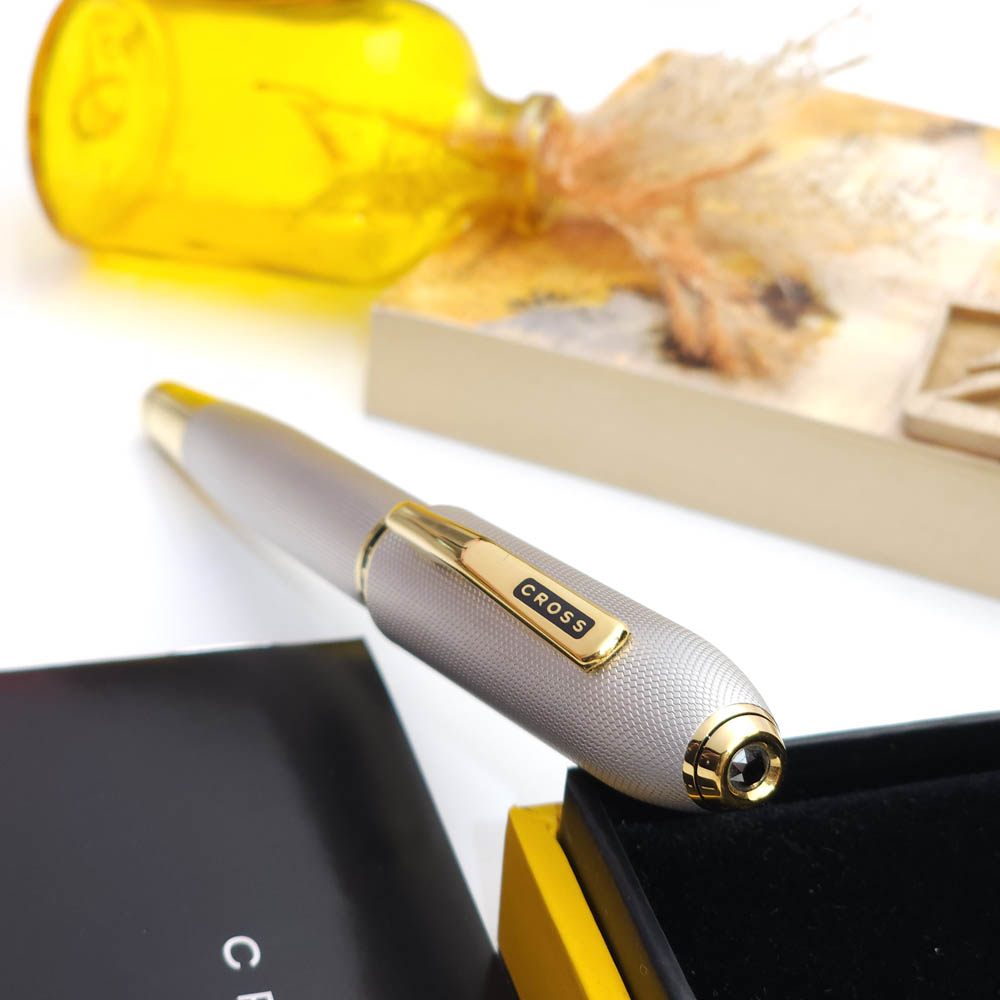 بدنه قلم با طلای ۲۳ عیار روکش شده و با برلیان سواروسکی در مقطع بالایی درب قلم تزیین گردیده است