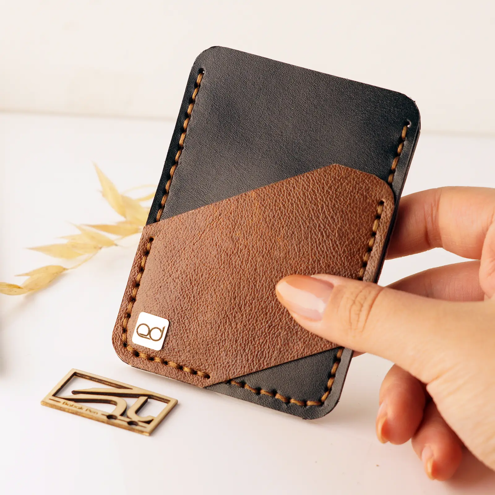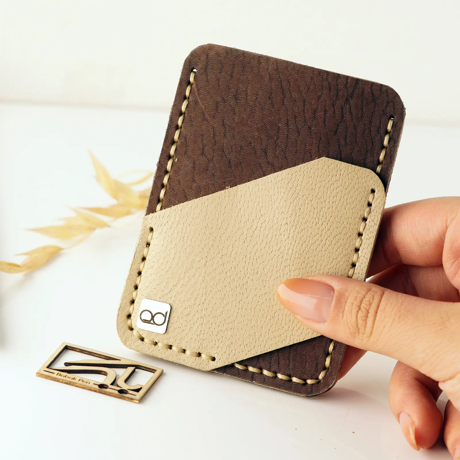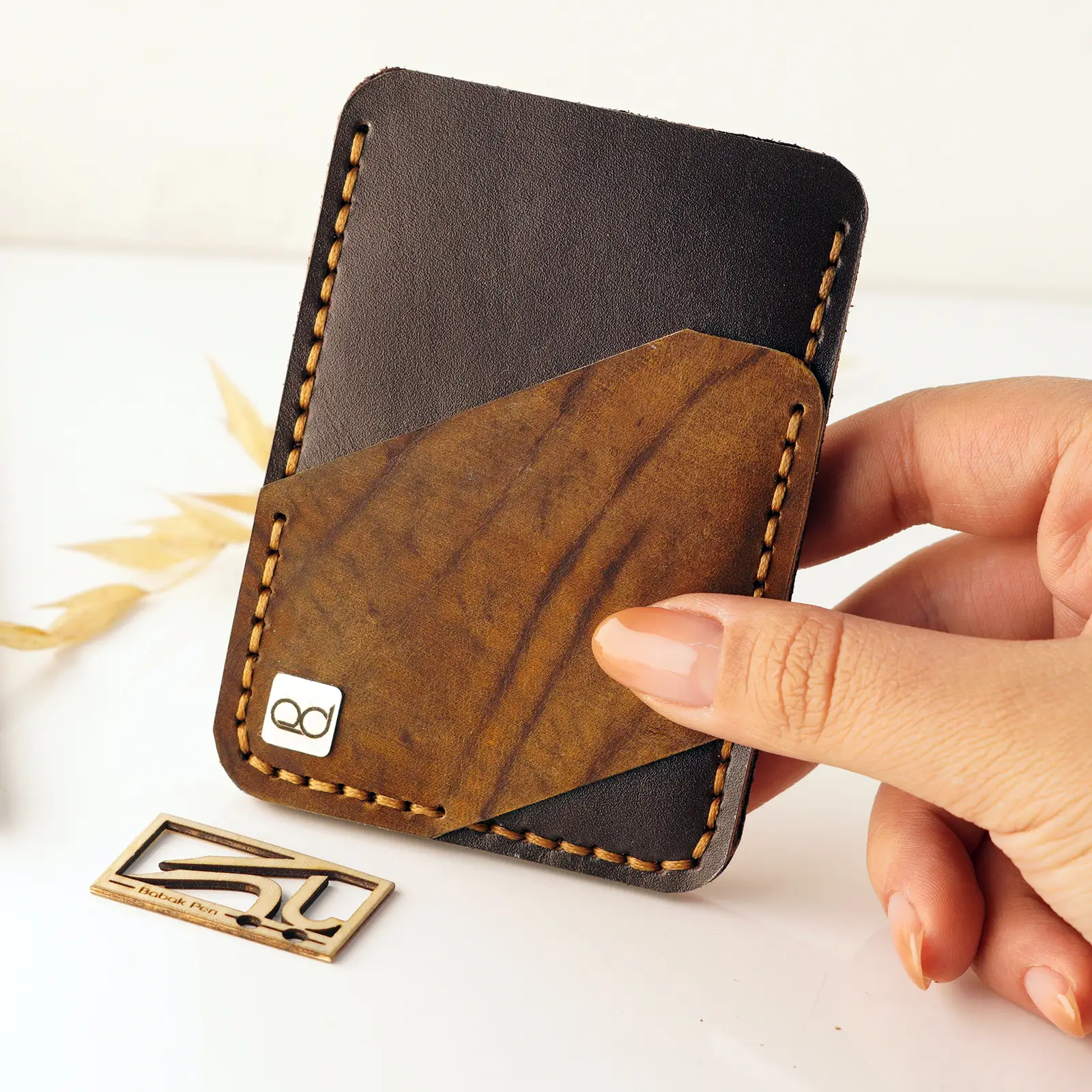 کیف کارت اعتباری چرم دست دوز تم قهوه ای مدل ED Consept store Card wallet brown theme J8