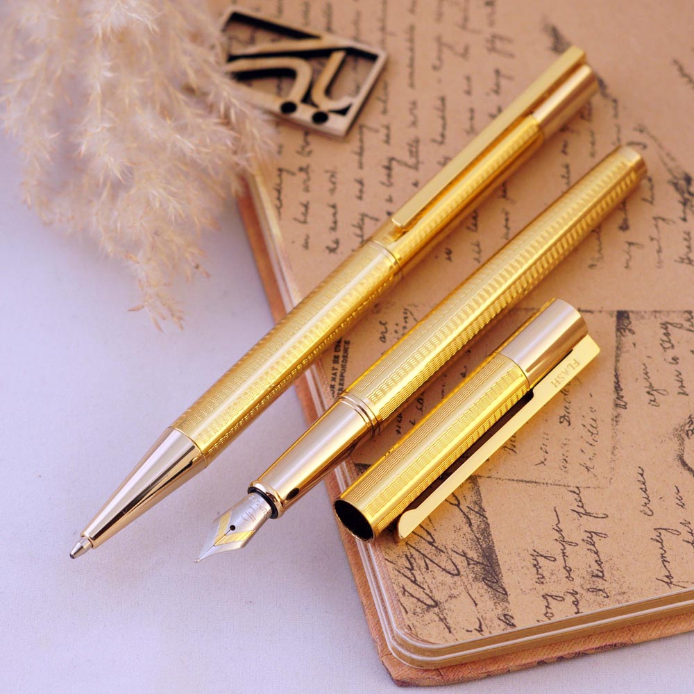 بدنه ی هر دو قلم با طلا آبکاری شده و نقوشی ظریف و هنرمندانه روی آن حک شده است. این جزئیات علاوه بر جلوه زیبا، باعث تمایز این ست از مدل های ساده تر می شود. گیره قلم ها نیز با طراحی ویژه روی بدنه سوار شده اند که علاوه بر استحکام، زیبایی بیشتری به آنها بخشیده است.