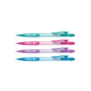 Mechanical pencil with 0.5 mm line width. Tip is obtained by repeatedly pressing the top button or pressing the side button or shaking the pencil up and down.