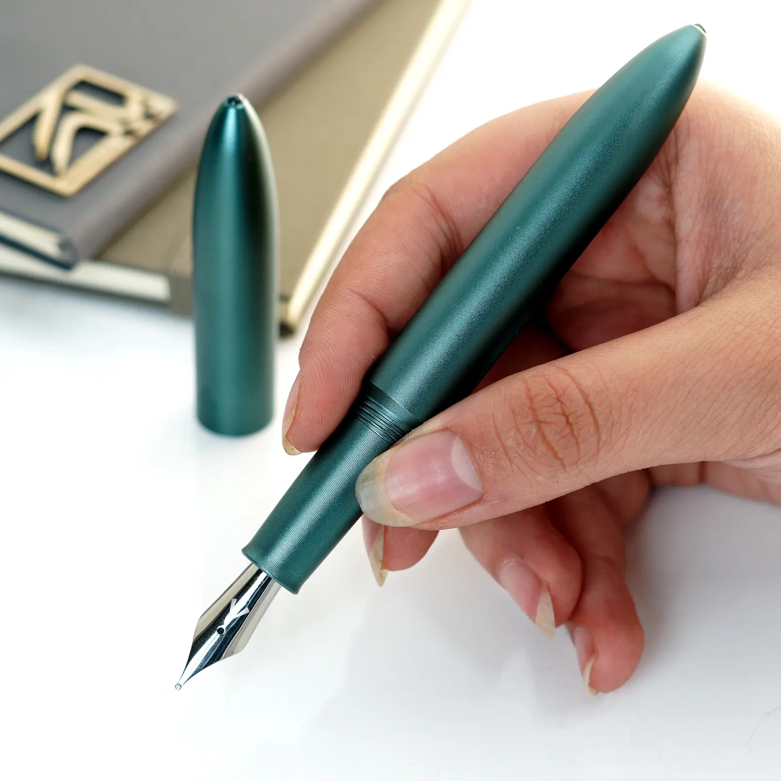 خودنویس گراویتاس فلگشیپ آلومینیوم کاج (سبز) نسخه ی ارتقا یافته و بازطراحی شده ی پرچمدار برند گراویتاس است؛ خودنویسی که با حفظ روح طراحی صنعتی و مینیمال این برند، تجربه ای نرم، متعادل و حرفه ای از نوشتن را ارائه می دهد. این مدل برای نویسندگانی طراحی شده که به دنبال قلمی بزرگ، خوش ساخت و دقیق هستند، اما در عین حال وزن سبک آلومینیوم را ترجیح می دهند.