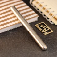 بدنه این خودنویس از برنج بدون سرب Eco Brass ساخته شده — همان آلیاژ اصیل کارخانه Wieland در آلمان. رنگ طلایی گرم برنج، جلوهای مجلل و خاص به Supra میبخشد. و خبر خوب این است: این قلم با استفادهی مداوم، پتینهای طبیعی به خود میگیرد که داستانهای شخصی شما را روی بدنهاش ثبت میکند!