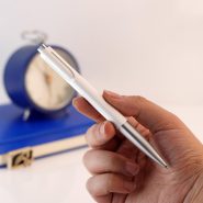 بدنه ی این خودکار با رنگ آبی مات (سرمه ای) پوشیده شده که ظاهری مدرن و حرفه ای به آن داده است. بخش جلویی و دکمه فشاری با رنگ نقره ای متالیک طراحی شده اند که در کنار رنگ بدنه، ترکیبی هماهنگ و خوش استایل ایجاد کرده اند.