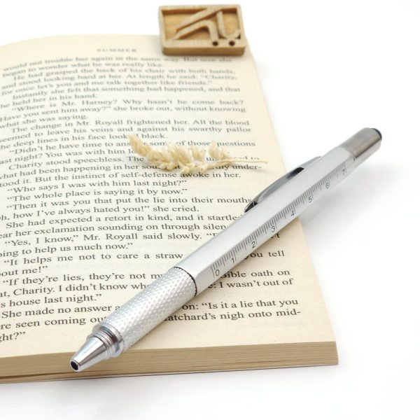 The Plastic Tool Pen brings 7 tools in one premium quality writing instrument! The light weight, 6-sided barrel houses our smooth writing Soft-Roll ballpoint at one end and very handy phillips and flat head screwdrivers at the other. On the barrel you will see a built in level, ruler and 2 different scale functions. The chiseled spring clip will hold the Plastic Tool Pen securely in your pocket, ready to handle more jobs in an instant!