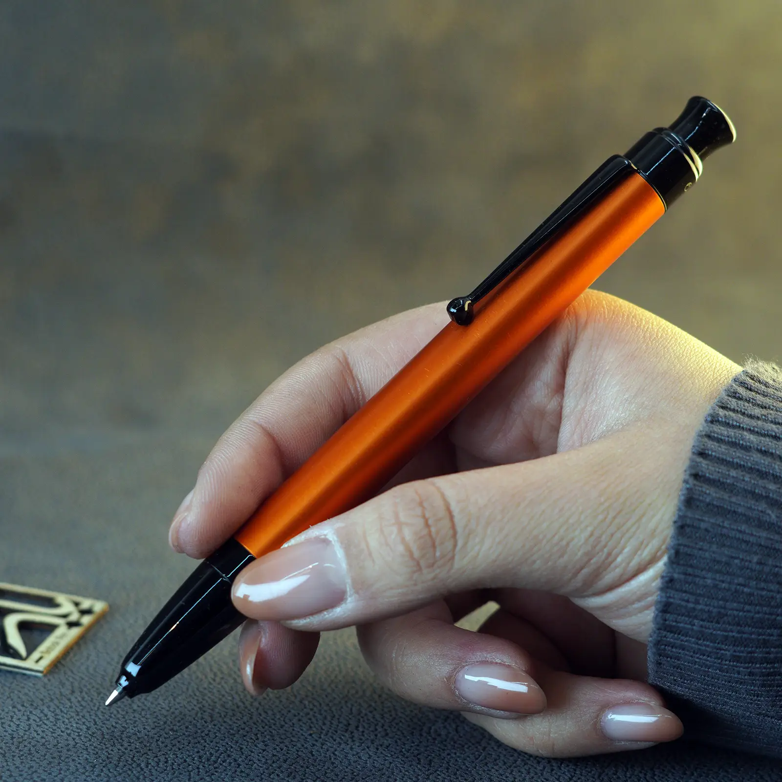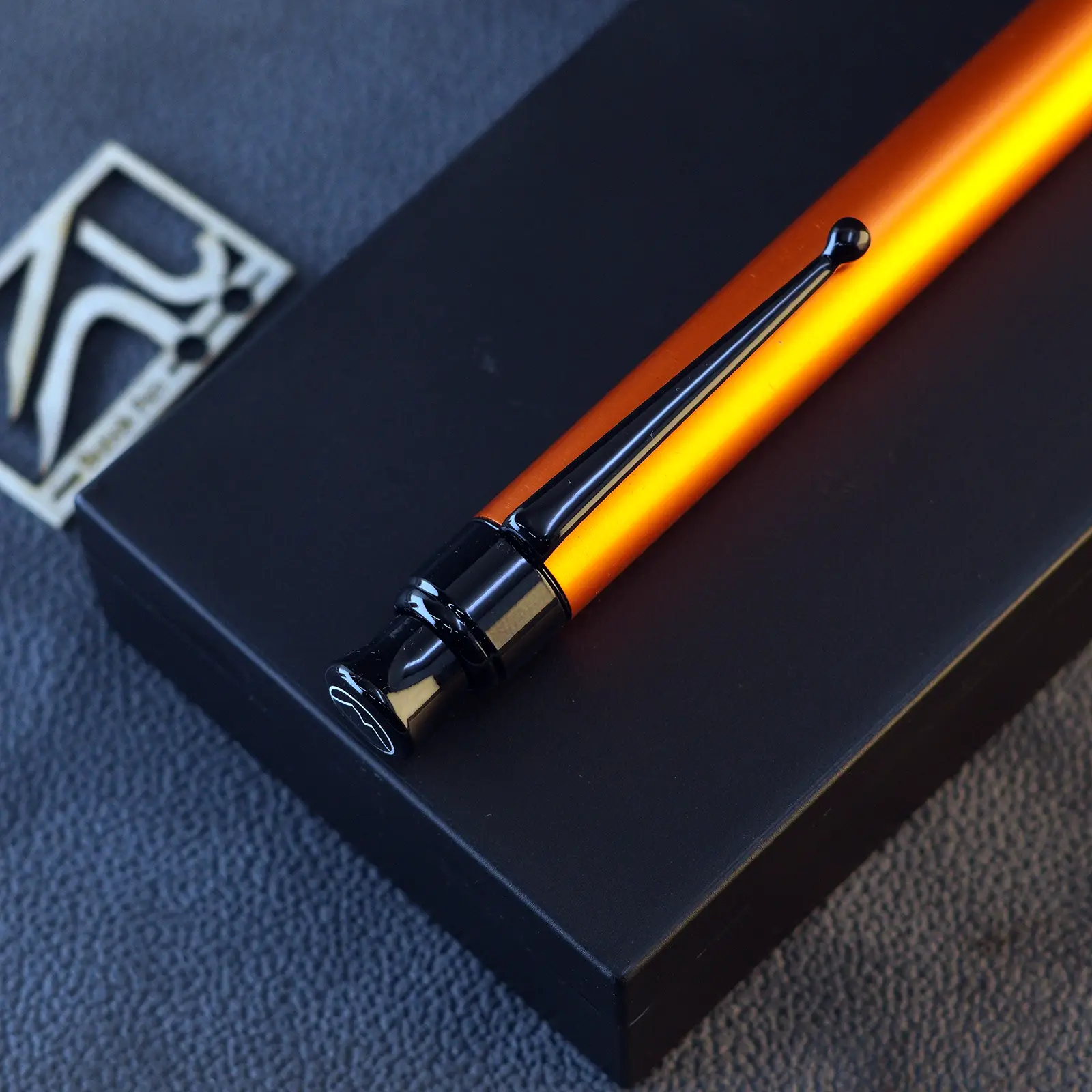 رنگ Sunrise Orange بدنه آلومینیومی آنودایز شده، ظاهری درخشان، مدرن و جوان پسند دارد. وزن و تعادل حرفه ای، نوک رولربال نرم و جریان جوهر یکنواخت باعث می شود این محصول برای کسانی که نوشتار روان و بدون دردسر می خواهند انتخابی بی نقص باشد.