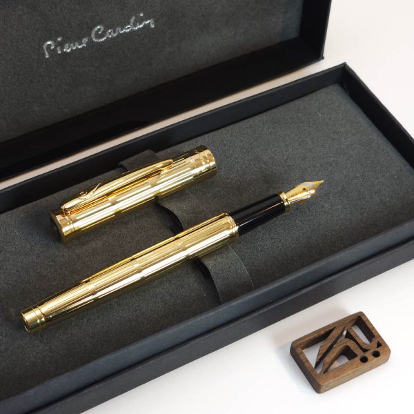 گیره قلم و مقطع بالای قلم منقوش به نشان پیر کاردن می باشد