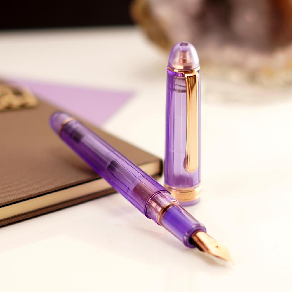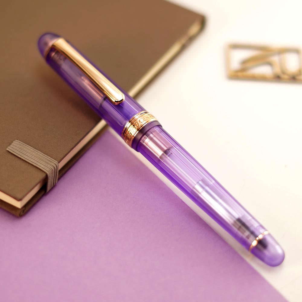 محصول خودنویس پلاتینیوم سنتری ۳۷۷۶ نیس لاوانده PLATINUM Century 3776 FP Nice Lavande – طراحی شفاف به رنگ اسطوخودوس با جزئیات رزگلد