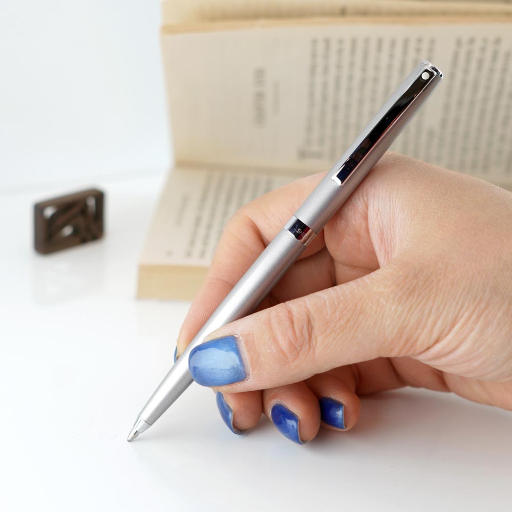 یکی از ویژگی های مهم خودکار شیفر ساگاریس نقره مات، استفاده از مکانیزم پیچی برای باز و بسته کردن نوک است. این مکانیزم باعث میشود که تجربه ی نوشتن همواره ساده و بدون مشکل باشد. برخلاف خودکار های فشاری، سیستم پیچی ساگاریس آرام، دقیق و بی صدا عمل می کند و همین ویژگی آن را برای محیط های کاری و رسمی به گزینه ای ایدهآل تبدیل کرده است.